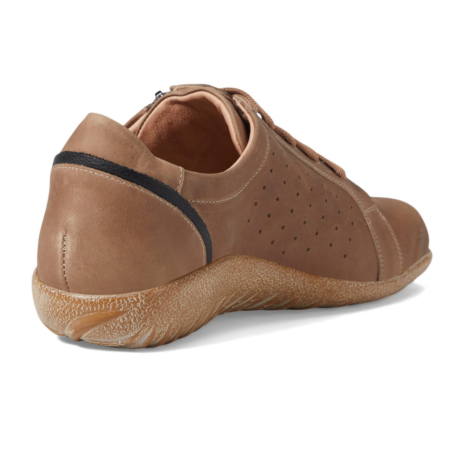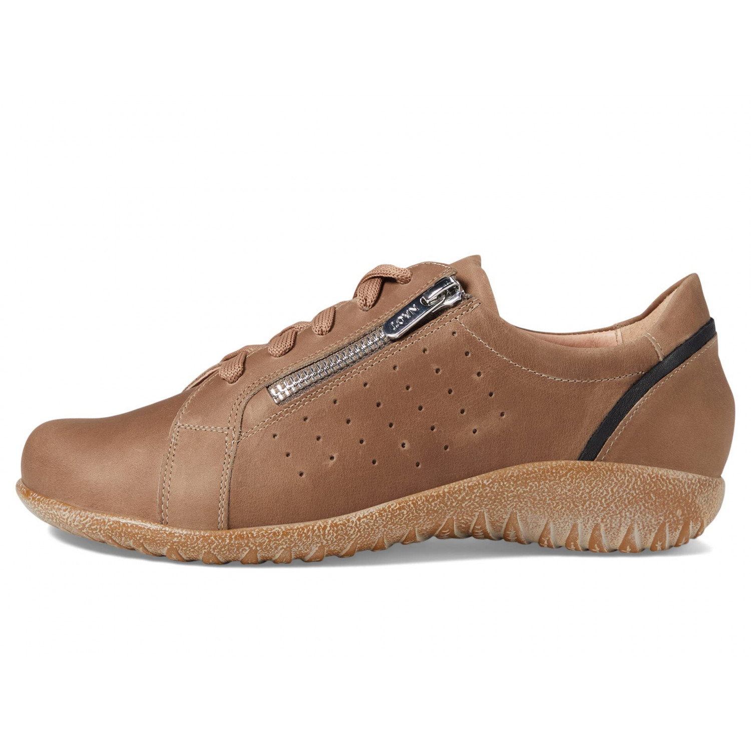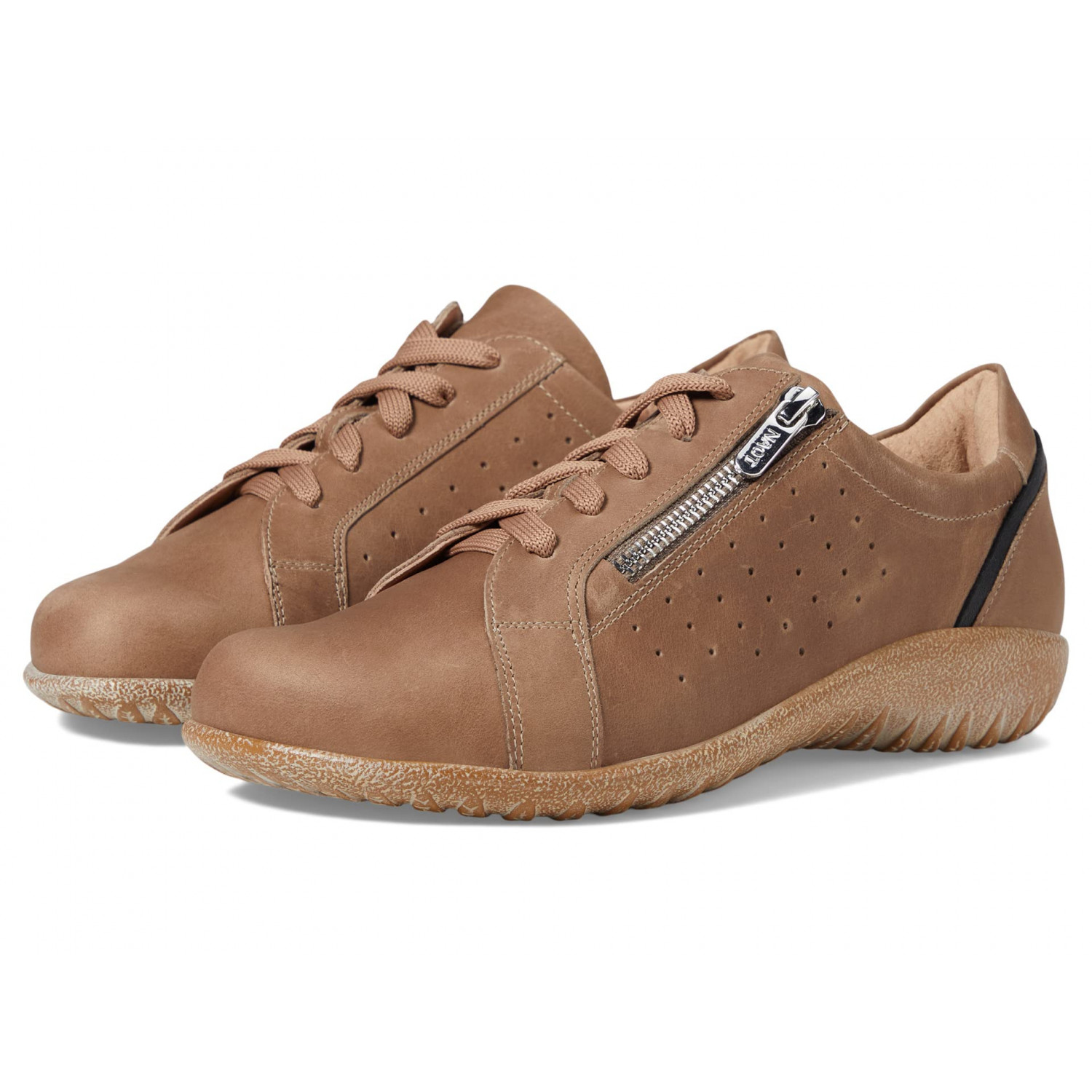 - Оксфорди Naot Moko, виготовлені вручну, оснащені елегантним верхом, знімною амортизуючою устілкою з пробки й латексу, а також гнучкою, стійкою до ковзання та легкою підошвою.