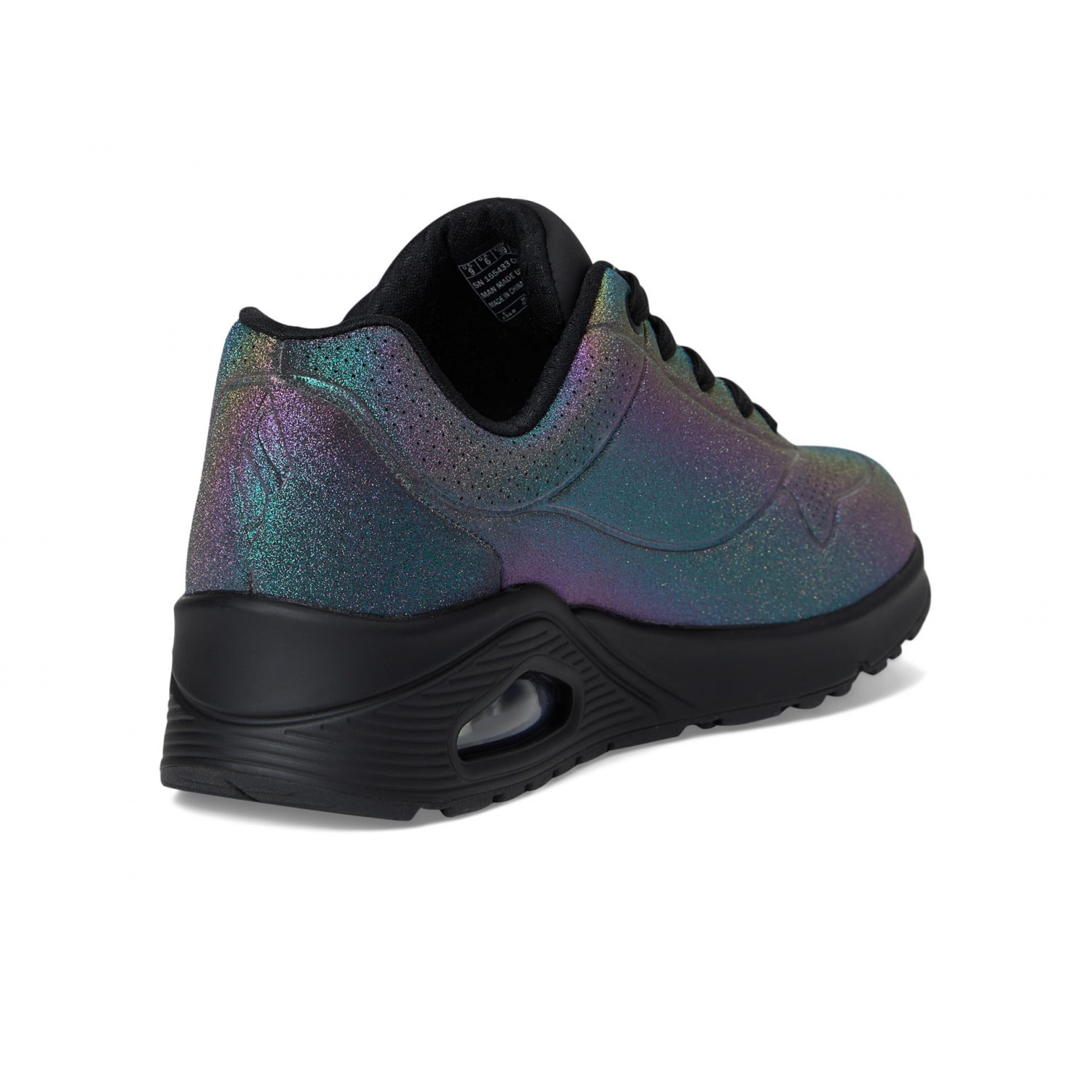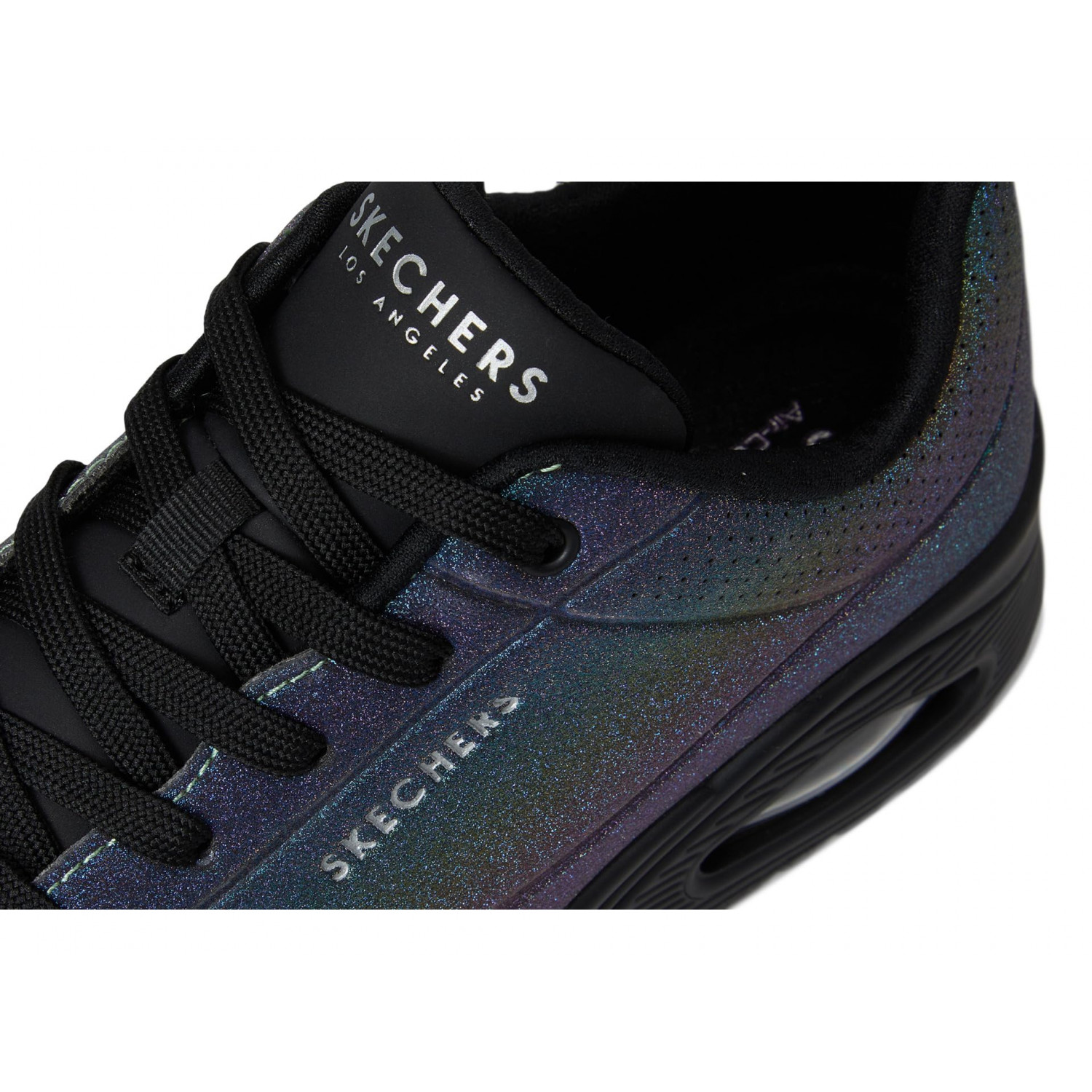 - Виблискуйте та сяйте всю ніч у комфорті, одягнувши SKECHERS Dazzling Nite.Ці модні кросівки на шнурівці мають різнокольоровий блискучий верх із синтетичної дюралевої шкіри, комфортну устілку Skechers Air-Cooled Memory Foam і контрастну проміжну підошву Skech-Air з видимою повітряною подушкою.
